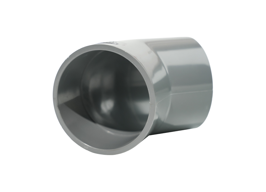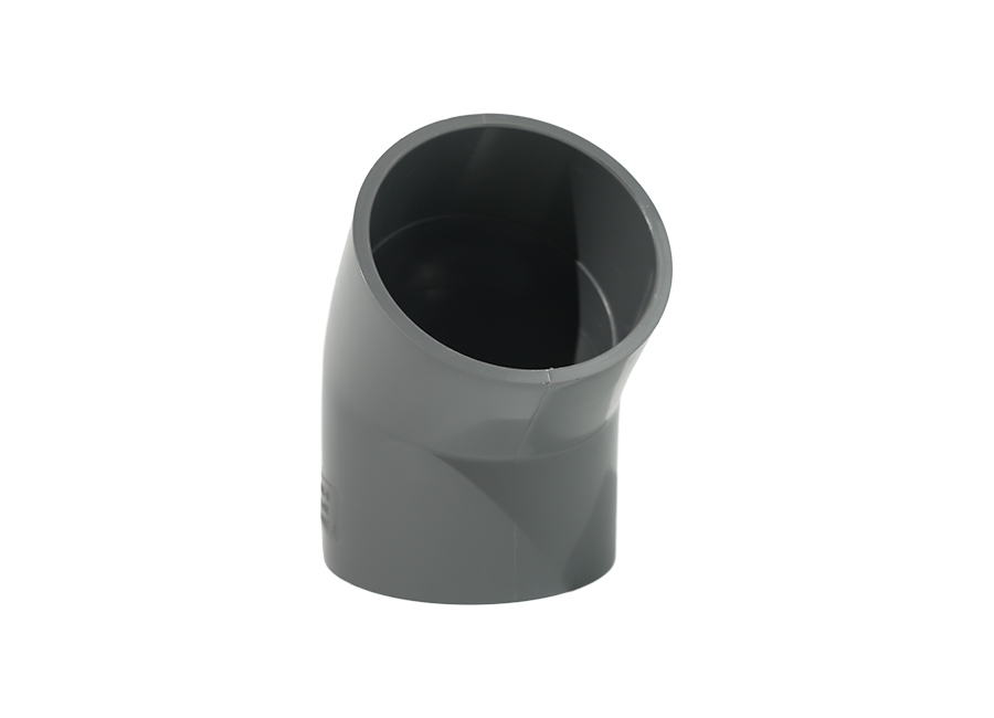 Cotul de 45° UPVC este un conector utilizat pe scară largă în instalațiile de conducte, folosit în principal pentru a schimba direcția conductei, în special la legătura dintre conducta principală și conducta de derivație. Datorită proprietăților sale fizice și metodelor de conectare convenabile, fitingurile pentru țevi din PVC-U, cum ar fi cotul de 45°, sunt utilizate pe scară largă în domenii precum alimentarea cu apă, drenaj, industria chimică și irigarea agricolă. Cotul de 45° poate fi conectat la țeavă în diferite moduri, inclusiv ciment solvent, conexiune cu flanșă și conexiune priză, iar alegerea metodei de conectare depinde de mediul și cerințele specifice de instalare.